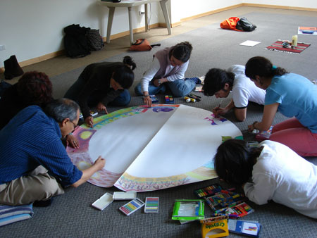 El sábado 29 de julio de 2006 se realizó en Bogotá el taller programado de "Creando e interpretando Mandalas" a cargo de Maria Mercedes Trujillo, médica psiquiatra miembro de ADEPAC. Además de conocer sobre el origen, historia, usos y psicología de los mandalas, cada participante tuvo oportunidad de ponerse en contacto con su interior y llevar tal información en un trabajo tanto individual como colectivo. Las fotografías que mostramos a continuación son una muestra del trabajo y de la producción del taller.