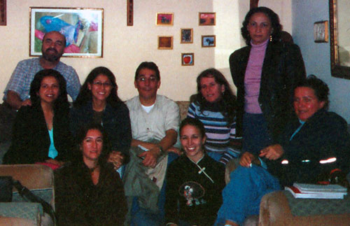 Grupo 1 de Medellín: atrás, Héctor Ospina, en segundo plano, de izquierda a derecha, Blanca González,Cristina Betancur, Alejandro Agudelo, Amparo Céspedes, y de pie, Cecilia Inés Zapata. En primer plano, Ruth Ospina, Marcela Quijano y Eloina Zuleta. No aparece en la foto María Patricia Quijano, quien tomo la foto. Las otras integrantes del grupo, ausentes ese día, son Yolanda Montoya, Eliana Fernández y Magali Ruíz.