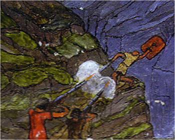 Es imposible mostrar un resumen de lo que fue la conversión de las imágenes de ese período de confusión en su posterior teoría. Pero quisiera tomar sólo dos imágenes para dar una idea de su trabajo interior. El momento de la ruptura con Freud, lo vivió Jung como una verdadera crisis de la mitad de la vida, en la que la persona ve que todo lo hecho hasta ese momento ya no lo satisface. Algún autor junguiano la describió como la sensación que tiene alguien que durante toda la primera mitad de la vida ha estado ascendiendo por una escalera, y el momento de la crisis viene al darse cuenta que la escalera estaba en la pared equivocada. Que entonces es necesario bajar, cambiar la escalera de pared y volver a iniciar el ascenso. Eso fue lo que tuvo que hacer Jung. Dejó la presidencia de la Asociación Internacional de Psicoanálisis, dejó la docencia universitaria, dejó el hospital, había perdido a Freud y a la mayoría de sus colegas, que lo habían dejado aislado y solo. Dice él, que afortunadamente tenía su familia y sus pacientes, y eso lo mantuvo en pie.