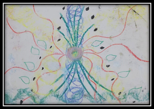 A continuación, comparto algunos de los ejercicios expresivos y creativos surgidos en las sesiones, los cuales fueron elegidos por las participantes, en los que van acompañados de algunas reflexiones escritas por ellas. Lo que encontramos allí es un tejido cargado de sentido, sensibilidad, y expresión que ha abierto potencialidades ocultas de las participantes y/o en las que han podido reconocer aspectos que ya poseían y que necesitaban salir a la luz.[14]