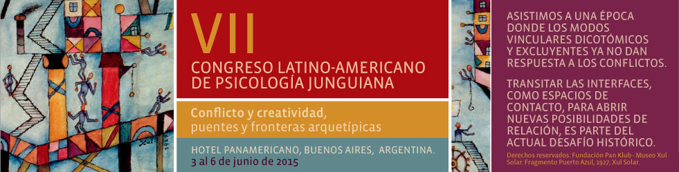 Desde 1998 los junguianos latinoamericanos hemos venido avanzando en la creación de un espacio de encuentro fraterno e intercambio científico entre los miembros de la comunidad junguiana de Latinoamérica. Es con éste objetivo que una vez más nos encontramos organizando el VII CONGRESO LATINOAMERICANO DE PSICOLOGIA JUNGUIANA que se realizará del 3 al 6 de Junio de 2015 en el Hotel Panamericano de Buenos Aires- Argentina.